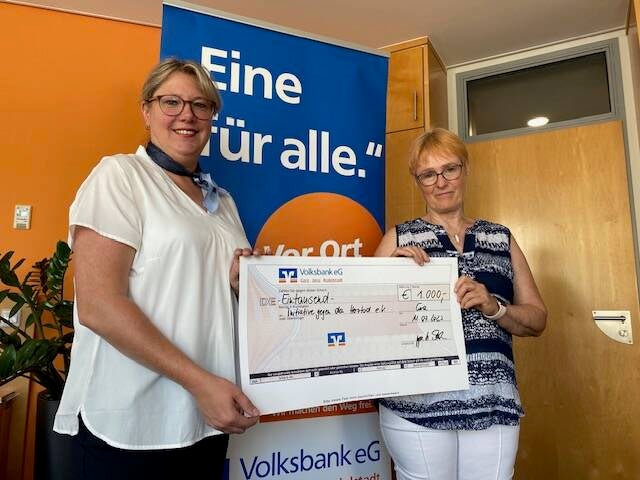 Die Volksbank e G Gera Jena Rudolstadt übergab der Initiative gegen den Herztod e.V. eine Spende von 1000 Euro für die Vorbereitung des Gesundheitstages am 20.10. 2023.
